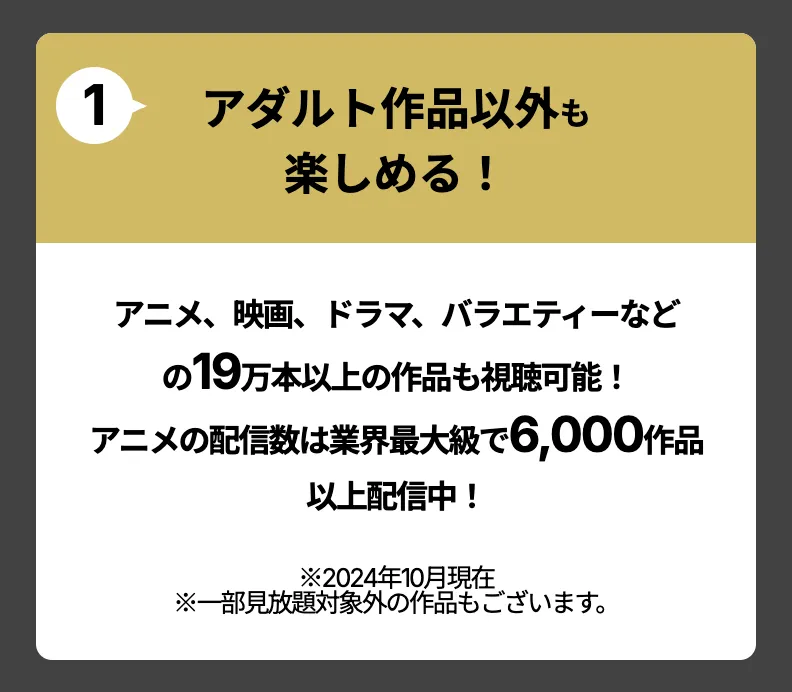 特に「DMMプレミアム」ならAV以外の映画・ドラマ・スポーツなどのコンテンツも見放題なので、家族に登録してもAV目的だとバレる可能性は無い。※楽天TVの見放題はAVのみなので注意!